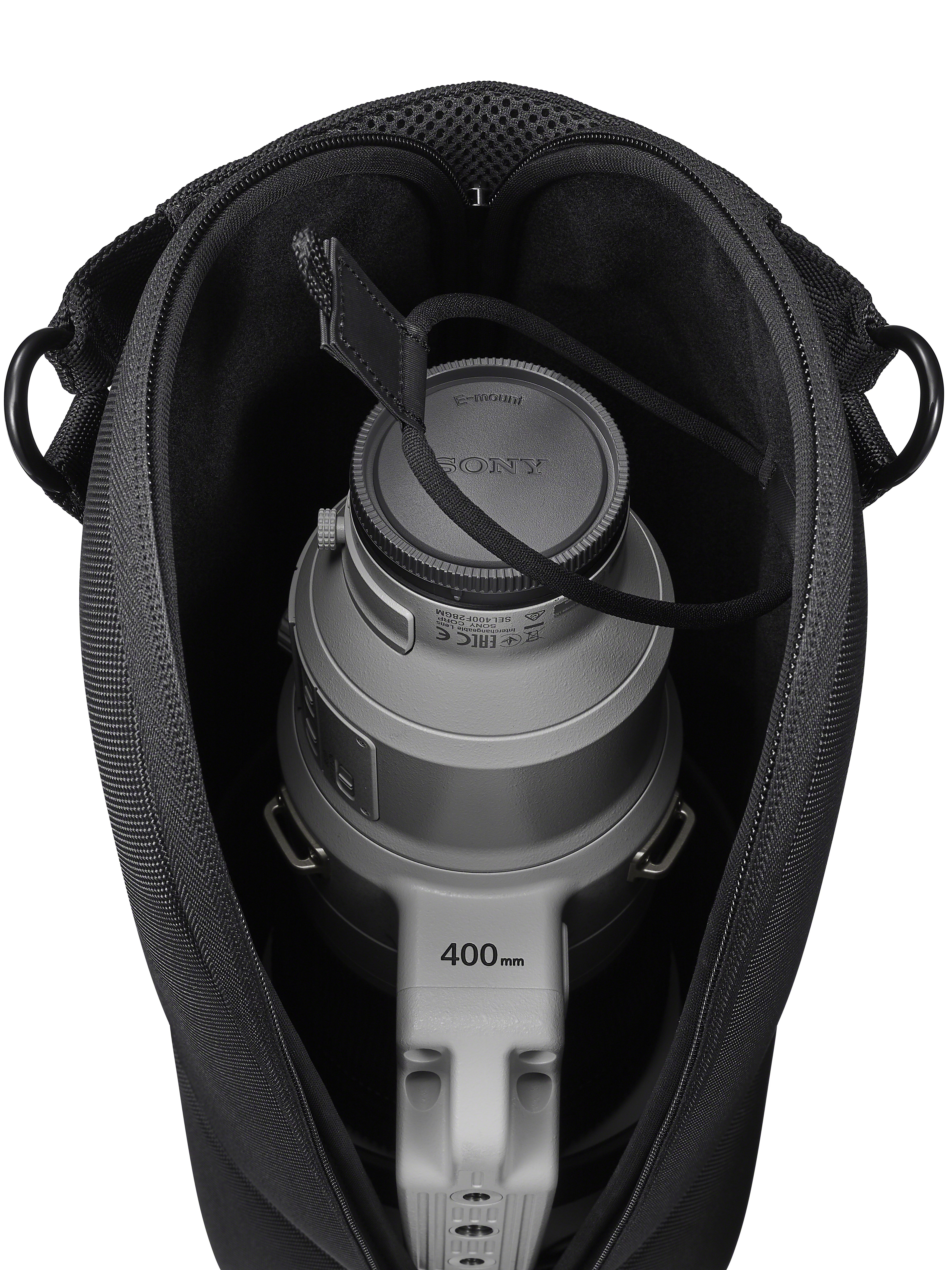 Den myke bærevesken for superteleobjektiver til Alpha-kameraer er designet for optimal beskyttelse av utstyret mot støv og riper. Vesken har en konisk form som gjør den perfekt til oppbevaring og transport av kompatible Sony-objektiver, og er et nyttig tilbehør i serien for utendørs fotografering av sportsbegivenheter, fugler og annet dyreliv.